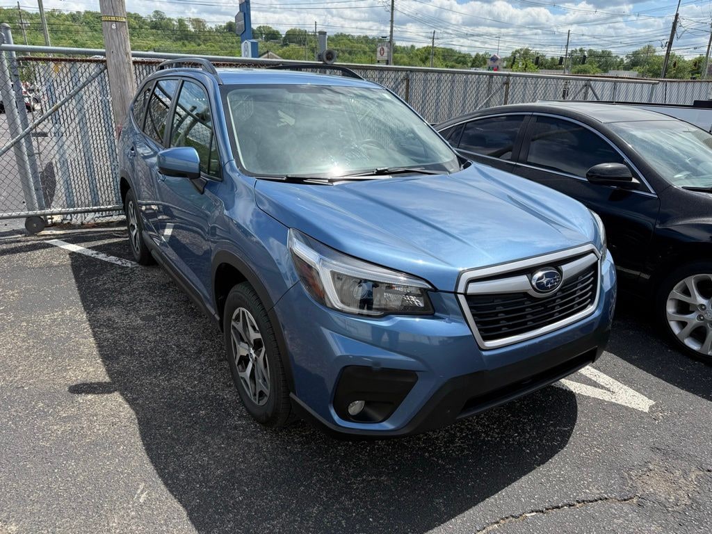 Recent Arrival! CARFAX One-Owner. 2021 Subaru Forester Premium 4D Sport Utility Horizon Blue Pearl AWD 2.5L 4-Cylinder DOHC 16V VVT Lineartronic CVT **PRICE REDUCED!!**, **ONE OWNER**, **LOCAL TRADE IN**, *LOW MILES*, *NON-SMOKER CAR*, *IMPECCABLE CONDITION*, *METICULOUSLY MAINTAINED*, *4 WHEEL DRIVE / 4X4*, *POWER MOONROOF*, *PANORAMIC/TWIN PANEL MOONROOF*, *ALLOY WHEELS*, *APPLE CARPLAY/ANDROID AUTOPLAY*, *BLUETOOTH*, *REAR BACK UP CAMERA*, *PUSH BUTTON START*, *HEATED FRONT SEATS*, *AUTO TRANS*, *4CYL GAS SAVER*, *ASK ABOUT OUR LOW FINANCING OPTIONS*, *ASK ABOUT OUR EXTENDED WARRANTY OPTIONS*. Priced below KBB Fair Purchase Price! 26/33 City/Highway MPG